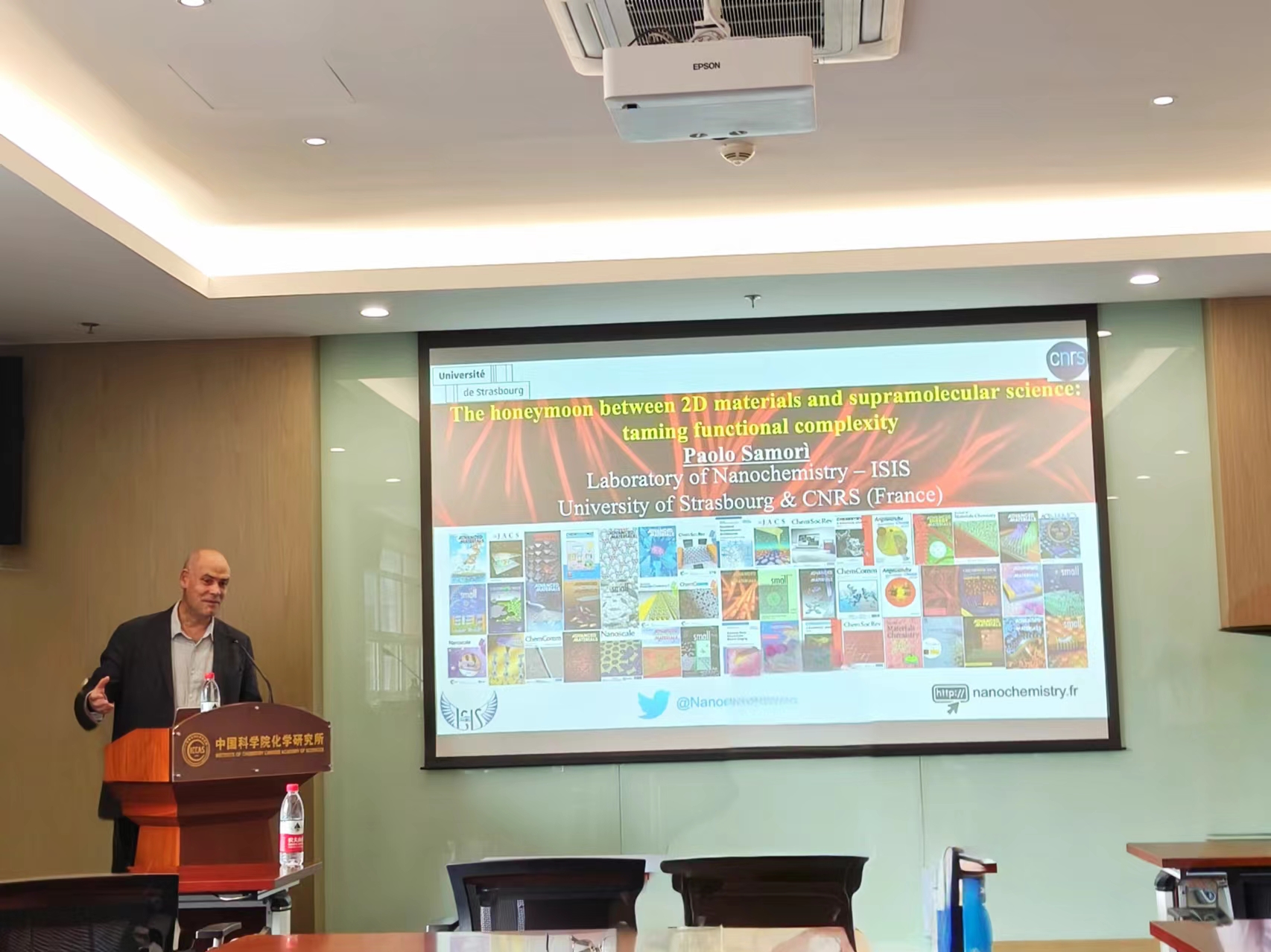 2024年5月23日,法国斯特拉斯堡大学&法国国家科学研究中心Paolo Samorì教授来访交流,并做题为“The honeymoon between 2D materials and supramolecular science: taming functional complexity”的邀请报告。